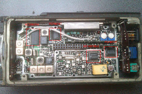 Now, going to the other board, we have the big chip to the left. It's made by Motorola, just like  most of the other chips in these units, except my Google-Fu can't come up with a part number. Most likely it's a custom part...hence the label on it.